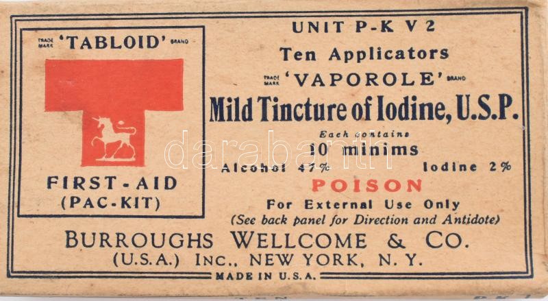 1945 Amerikai hadseregben rendszeresített kötszer csomag része, benne ... https://www.darabanth.com/de/394-Fernauktion/394.0/Kunst-Dokumente-andere-Sammelgebiete/Militaria~500029/1945-Amerikai-hadseregben-rendszeresitett-kotszer-csomag-resze-benne-roppanthato-jod-tinkturC3~II2384916