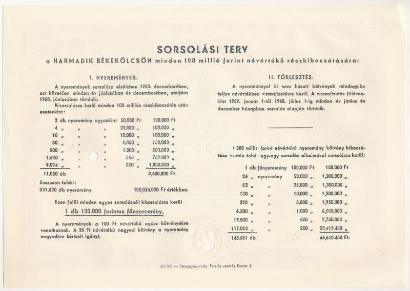 1952. "Harmadik Békekölcsön" nyereménykölcsöne 25Ft-ról, lyukasztásokk... https://www.darabanth.com/de/394-Fernauktion/394.0/Numismatik/Aktien-und-Tickets~2000005/1952-Harmadik-Bekekolcson-nyeremenykolcsone-25Ft-rol-lyukasztasokkal-ervenytelenitve-~II2388395