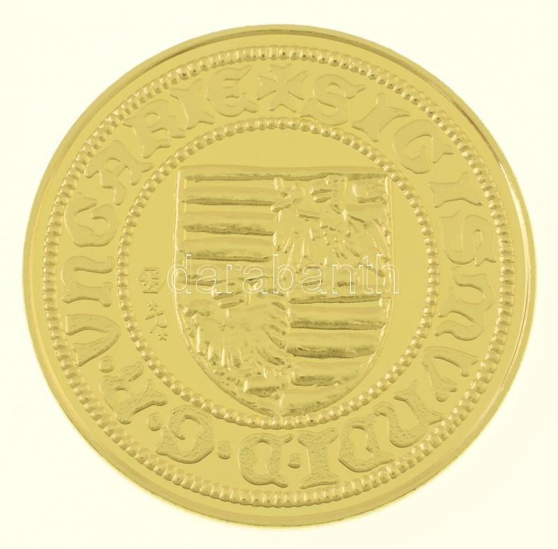 Beschreibung: DN "Magyar aranypénzek utánveretben - Luxemburgi Zsigmond aranyforint" aranyozott Ag emlékérem tanúsítvánnyal (5,5g/0.333/25mm) T:PP