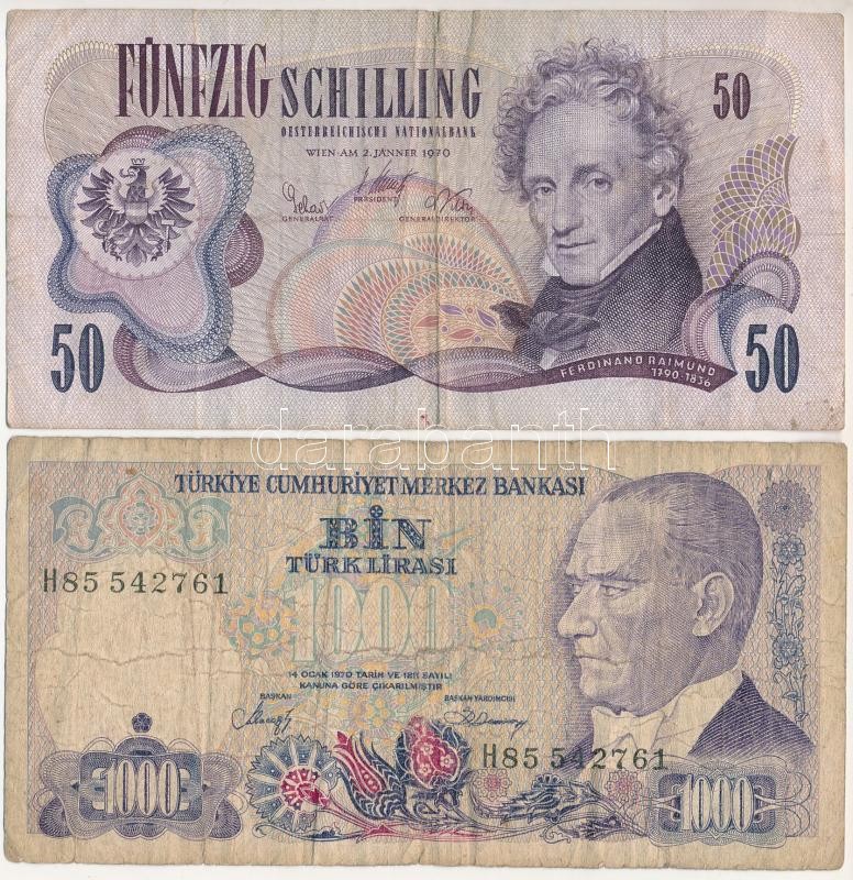 Vegyes: Ausztria 1970. 50Sch + Törökország 1970. 1000L T:III,III-
