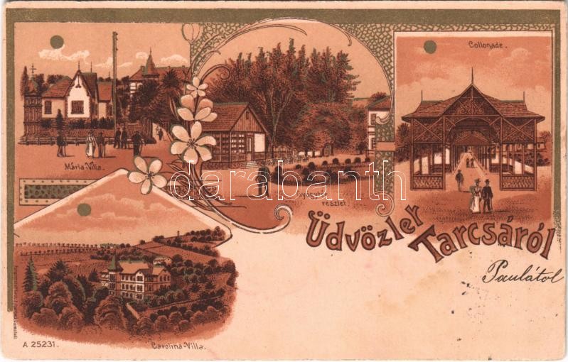 1901 Tarcsa, Tatzmannsdorf; Carolina és Mária villa, Gyógytér, Colonna... https://www.darabanth.com/de/395-Fernauktion/395.0/Ansichtskarten/Burgenland~1000011/1901-Tarcsa-Tatzmannsdorf-Carolina-es-Maria-villa-Gyogyter-Colonnade-villas-spa-Art-Nouv~II2399469