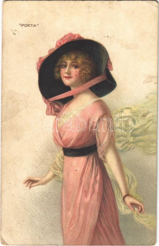 Portia / Lady art postcard. H. & S. No. 1703. litho (EK) https://www.darabanth.com/de/395-Fernauktion/395.0/Ansichtskarten/Damen~1000074/Portia-Lady-art-postcard-H-S-No-1703-litho-EK~II2401429