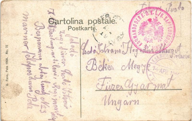 Beschreibung: 1915 Pola, Pula; Arsenal / hadihajógyár, hadihajók / warship factory + "K.u.K. Marinefeldpostamt" (fl)