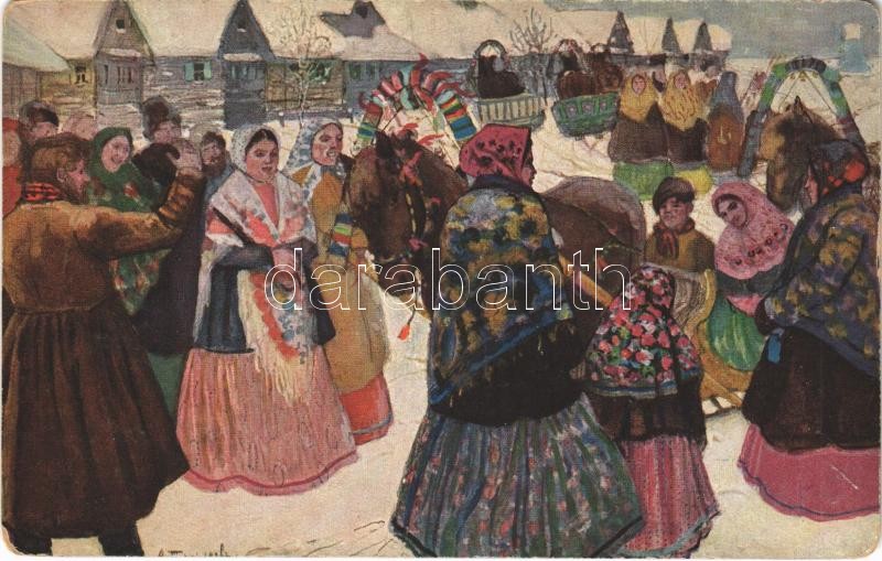 Beschreibung: 1920 Vergnügungsfahrt / "Pleasure drive" Russian folklore art postcard. T.S.N. R.M. No. 67. s: A. Tretjakoff (kopott sarkak / worn corners)
