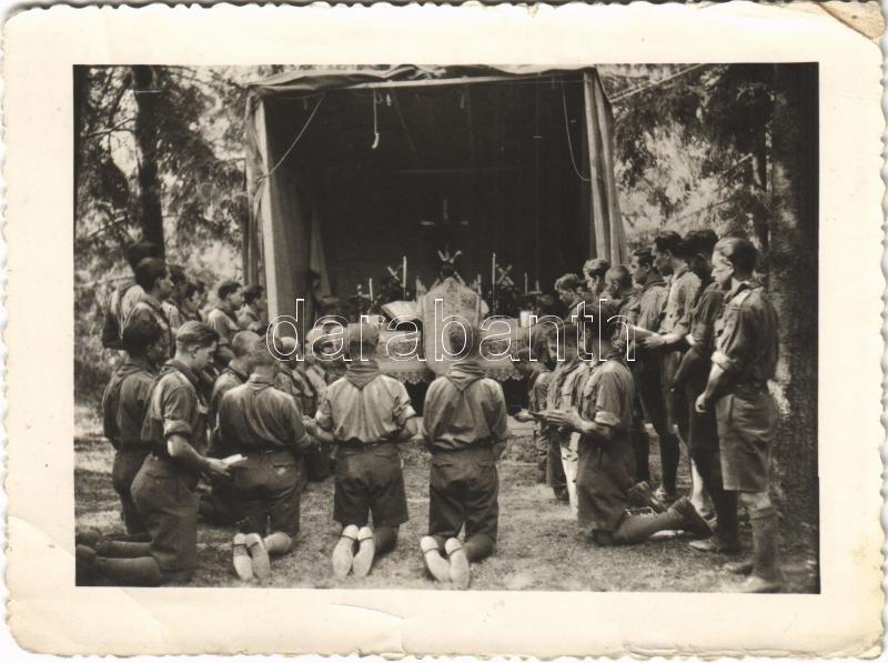 Cserkészek tábori miséje / Hungarian boy scouts' field mass. phot... https://www.darabanth.com/de/395-Fernauktion/395.0/Ansichtskarten/Pfadfinder~1000067/Cserkeszek-tabori-miseje-Hungarian-boy-scouts-field-mass-photo-non-PC-szakadas-tear~II2401900