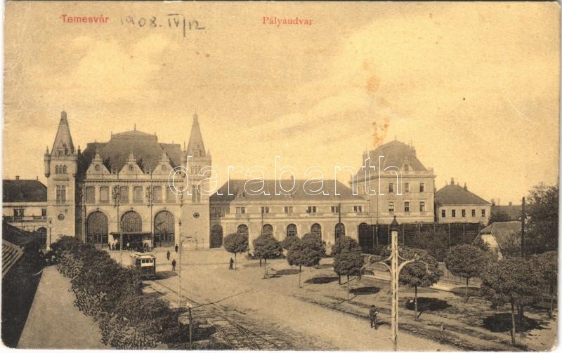 1908 Temesvár, Timisoara; pályaudvar, vasútállomás, villamos. W.L. 127... https://www.darabanth.com/de/395-Fernauktion/395.0/Ansichtskarten/Siebenburgen~1000006/1908-Temesvar-Timisoara-palyaudvar-vasutallomas-villamos-WL-127-railway-station-tram~II2399875