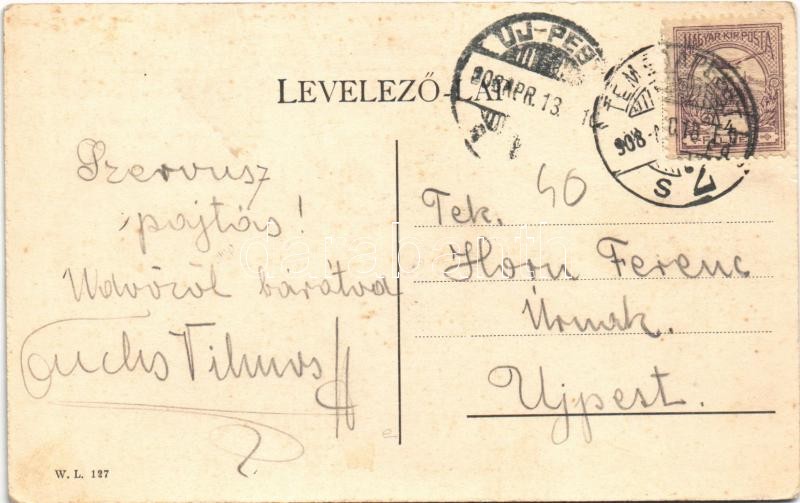Beschreibung: 1908 Temesvár, Timisoara; pályaudvar, vasútállomás, villamos. W.L. 127. / railway station, tram