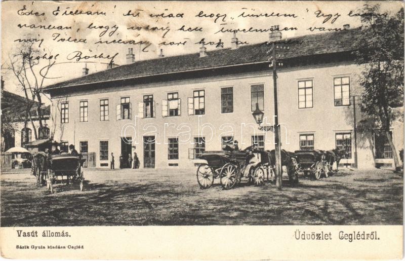 1905 Cegléd, vasútállomás, lovaskocsik. Sárik Gyula kiadása https://www.darabanth.com/de/395-Fernauktion/395.0/Ansichtskarten/Ungarn~1000005/1905-Cegled-vasutallomas-lovaskocsik-Sarik-Gyula-kiadasa~II2314189