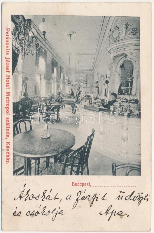 1908 Budapest VII. Petanovits József Hotel Metropol szálloda és kávéhá... https://www.darabanth.com/de/395-Fernauktion/395.0/Ansichtskarten/Ungarn~1000005/1908-Budapest-VII-Petanovits-Jozsef-Hotel-Metropol-szalloda-es-kavehaz-belso-Rakoczi-ut~II2399125