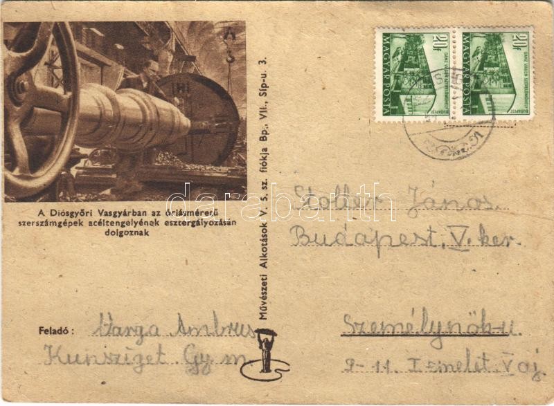 1954 Diósgyőr (Miskolc), Vasgyárban az óriásméretű szerszámgépek acélt... https://www.darabanth.com/de/395-Fernauktion/395.0/Ansichtskarten/Ungarn~1000005/1954-Diosgyor-Miskolc-Vasgyarban-az-oriasmeretu-szerszamgepek-aceltengelyenek-esztergC3~II2303845