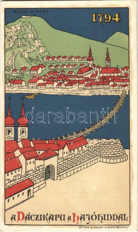 Budapest anno 1794. A Váczikapu a Hajóhíddal. Geittner és Rausch kiadá... https://www.darabanth.com/de/395-Fernauktion/395.0/Ansichtskarten/Ungarn~1000005/Budapest-anno-1794-A-Vaczikapu-a-Hajohiddal-Geittner-es-Rausch-kiadasa-Art-Nouveau-litho-EK~II2397971