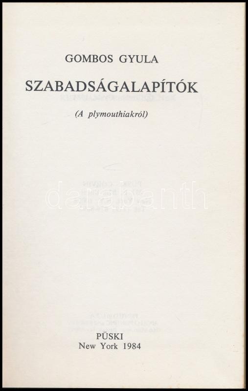 Gombos Gyula: Szabadságalapítók. (A plymouthiakról.) New York, 1984, P... https://www.darabanth.com/de/395-Fernauktion/395.0/Bucher/Bucher-Andere-kuriositaten~1500021/Gombos-Gyula-Szabadsagalapitok-A-plymouthiakrol-New-York-1984-Puski-Emigrans-kiadas-~II2402312