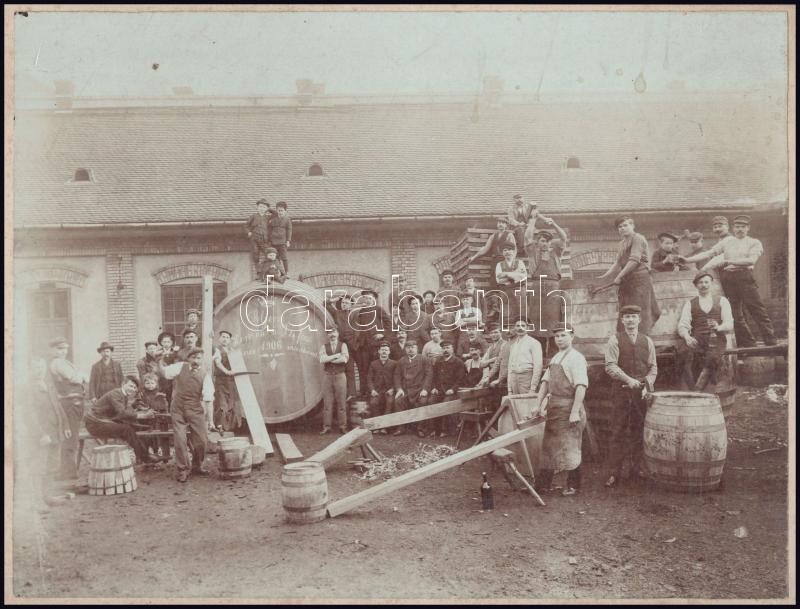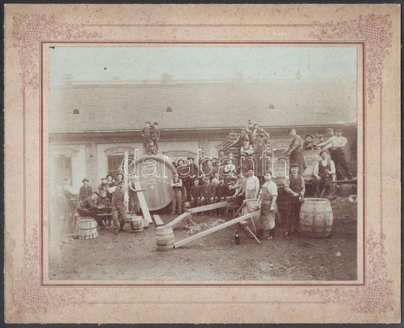 1906 Herrmann J. és fiai kádárüzem munkatársairól készült fotó, histor... https://www.darabanth.com/de/395-Fernauktion/395.0/Fotografie/Foto~500021/1906-Herrmann-J-es-fiai-kadaruzem-munkatarsairol-keszult-foto-historizalo-mintaju-kar~II2396743