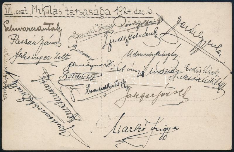 1924 A Mikulás társasága c. előadás résztvevői, hátoldalán aláírások, ... https://www.darabanth.com/de/395-Fernauktion/395.0/Fotografie/Foto~500021/1924-A-Mikulas-tarsasaga-c-eloadas-resztvevoi-hatoldalan-alairasok-9x13-8-cm~II2396199
