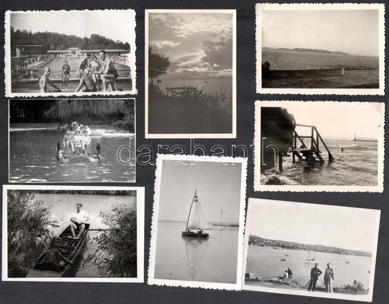 Beschreibung: Fürdőzéssel, Balatonnal kapcsolatos képek, 75 db vegyes fotó, közte több feliratozott, 5,5x4 cm és 10x6,5 cm közötti méretben