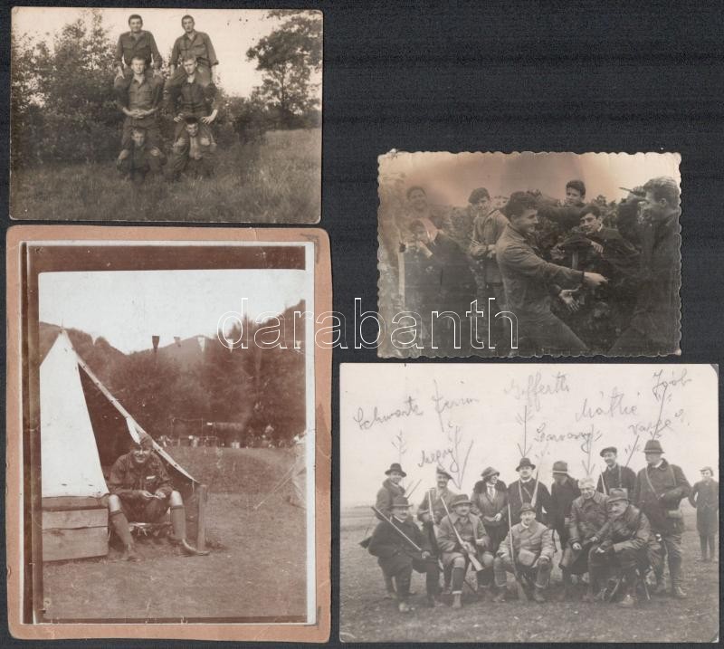 Vegyes régi fotó tétel: vadászat, cserkészet, portrék, családi fotók, csoportképek, stb., 67 db fotó és fotólap, közte több feliratozott, 7,5x5 cm és 14x9 cm közötti méretben