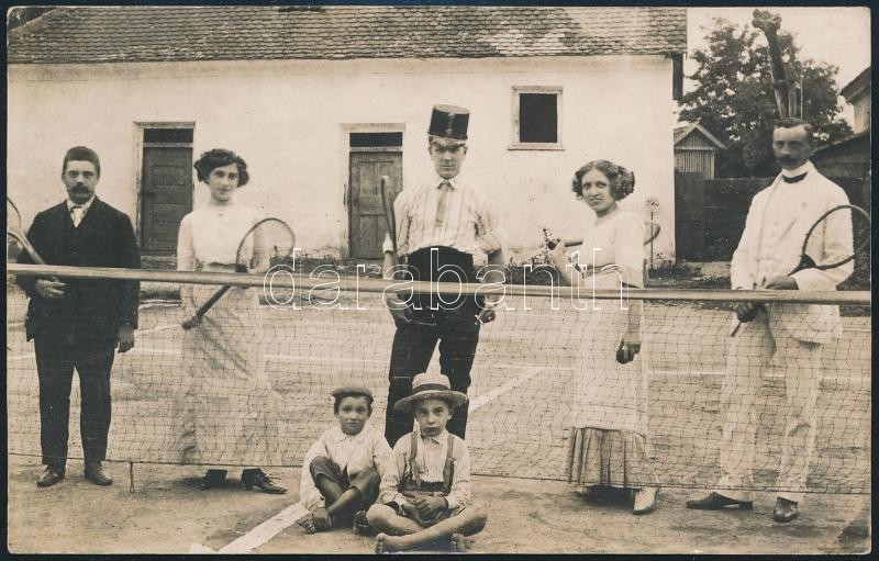 cca 1910-1930 Teniszezők, fotólap, 14x9 cm https://www.darabanth.com/de/395-Fernauktion/395.0/Fotografie/Foto~500021/cca-1910-1930-Teniszezok-fotolap-14x9-cm~II2402795