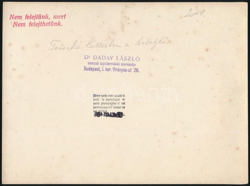 Beschreibung: cca 1930 Torockó, háttérben a Székelykő, Daday László pecséttel jelzett fotója, feliratozva, 24×18 cm