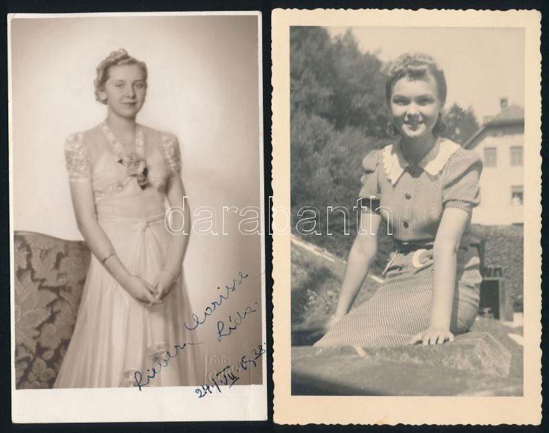 cca 1940-1950 Hölgyportrék, 9 db fotólap, 9×14 cm https://www.darabanth.com/de/395-Fernauktion/395.0/Fotografie/Foto~500021/cca-1940-1950-Holgyportrek-9-db-fotolap-9C39714-cm~II2399649