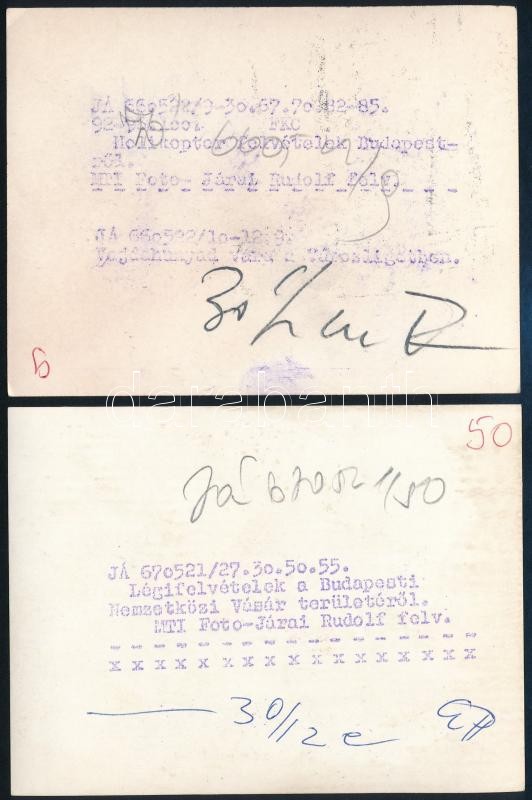 Beschreibung: cca 1967 Légifotók a Városligeti-tóról és környékéről, Járai Rudolf 2 db vintage fotója, feliratozva, 9x12 cm