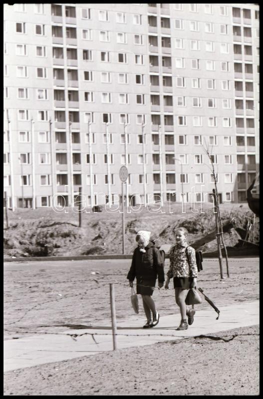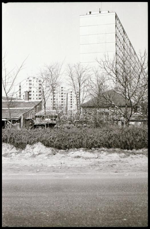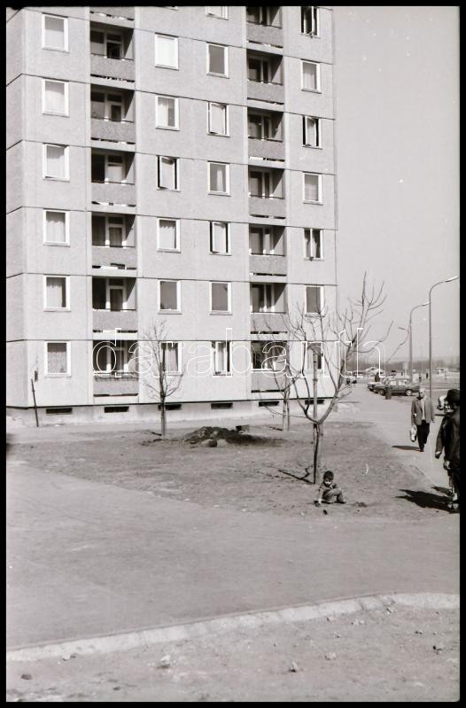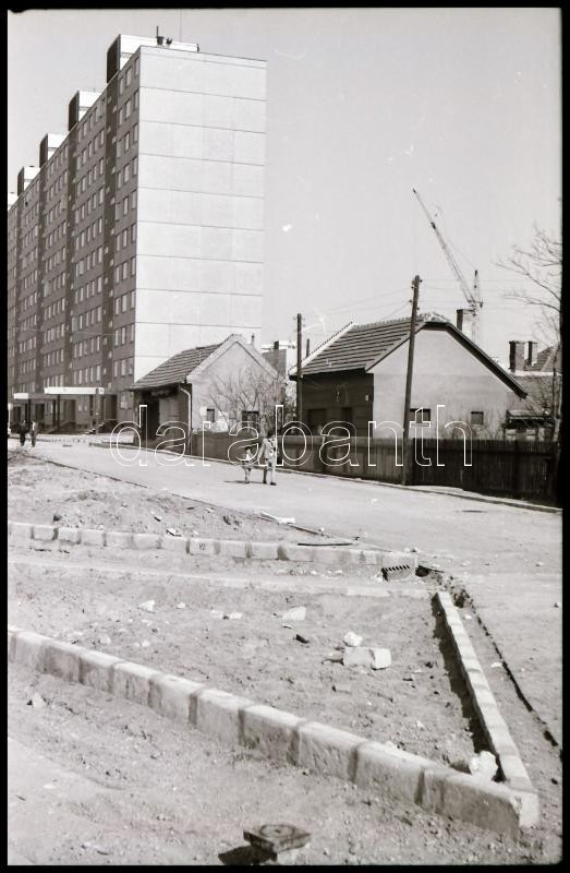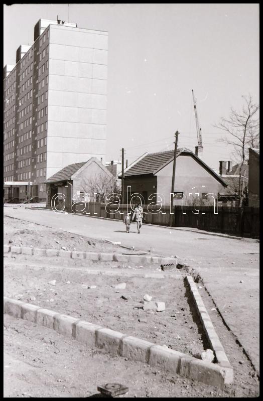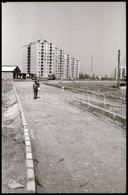 cca 1970 Budapest, Újpalota lakótelep, Magyar Alfréd budapesti fotóművész 38 db vintage NEGATÍV felvétele (épületek, látképek, új lakók, kapcsolat a régi környezettel, stb.), professzionális minőség, 24x36 mm