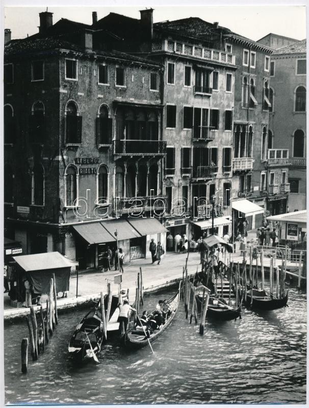 Beschreibung: cca 1984 Menesdorfer Lajos (1941-2005) budapesti fotóművész hagyatékából, feliratozott, vintage fotóművészeti alkotás (Gondolák a Rialtónál), 24x18 cm