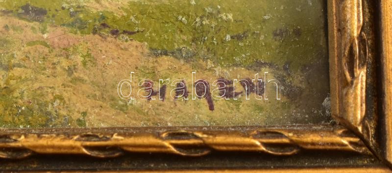 Beschreibung: Hárencz János (1899-1969): Faluvége gémeskúttal. Olaj, karton, jelzett. Üvegezett fa keretben, 5,5×7 cm