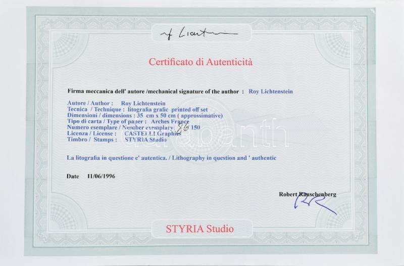 Roy Lichtenstein (1923-1997): Kompozíció. Ofszet litográfia, papír, ny... https://www.darabanth.com/de/395-Fernauktion/395.0/Gemalde-und-Grafiken/Gemalde-und-Grafiken~500001/Roy-Lichtenstein-1923-1997-Kompozicio-Ofszet-litografia-papir-nyomtatott-jelzessel-szam~II2402281