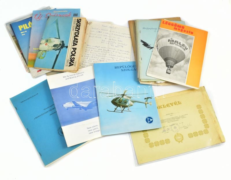 cca 1980-2000 Hőlégballonnal és repüléssel kapcsolatos papírhagyaték, nyomtatványok, újságok, oklevél, ...stb., oklevél. Gulyás Géza (1933-2005), az újkori hőlégballon-repülés magyarországi atyjának hagyatékából.