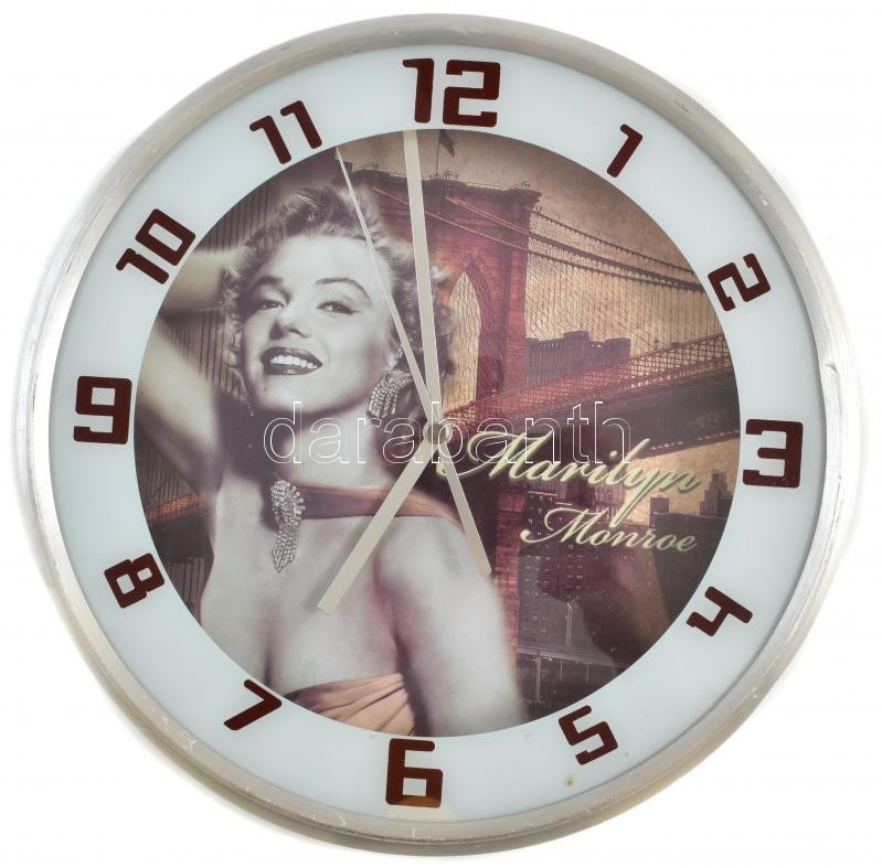 Marylin Monroe kvarc falióra fém kerettel, alján kis horpadással d: 26... https://www.darabanth.com/de/395-Fernauktion/395.0/Kunst-Dokumente-andere-Sammelgebiete/Flohmarkt~500012/Marylin-Monroe-kvarc-faliora-fem-kerettel-aljan-kis-horpadassal-d-26-cm~II2395106