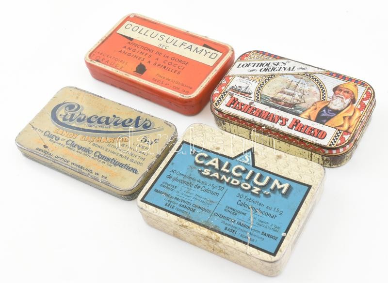 4 db külföldi fém gyógyszeres dobozka, kopásnyomokkal https://www.darabanth.com/de/395-Fernauktion/395.0/Kunst-Dokumente-andere-Sammelgebiete/Werbungen~500022/4-db-kulfoldi-fem-gyogyszeres-dobozka-kopasnyomokkal~II2400517