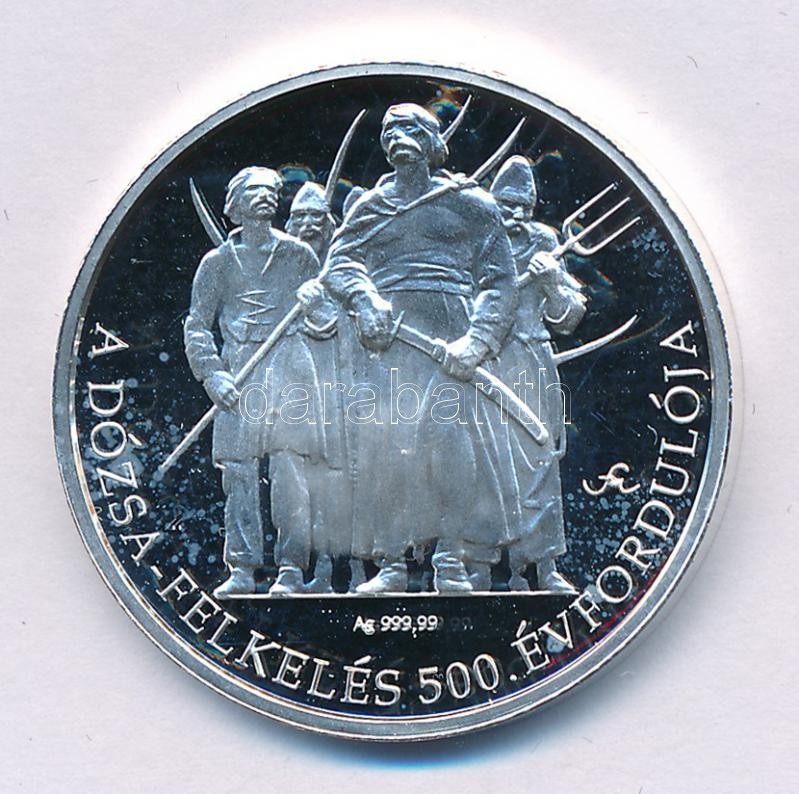 Fritz Mihály (1947- ) DN "A Dózsa-felkelés 500. évfordulója / Magyarország Történelme" Ag emlékérem. tanúsítvánnyal (10,07g/0.999/30mm) T:PP