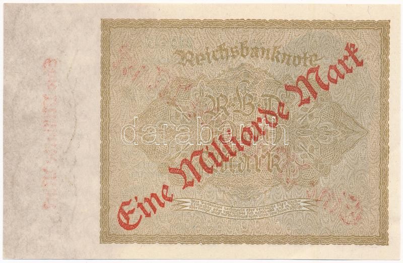 Németország / Weimari Köztársaság 1922. 1000M "Eine Milliard Mark" felülnyomással T:I-,II Germany / Weimar Republic 1922. 1000 Mark with "Eine Milliard Mark" overprint C:AU,XF Krause 113