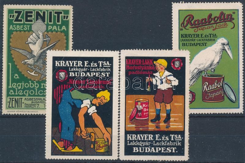 1908 Zenit, Raabolin és Krayer E és Tsa. lakkgyár levélzárói, 4 db klf https://www.darabanth.com/de/395-Fernauktion/395.0/Philatelie-und-Postgeschichte-Ungarn/Paraphilatelie~500016/1908-Zenit-Raabolin-es-Krayer-E-es-Tsa-lakkgyar-levelzaroi-4-db-klf~II2396292