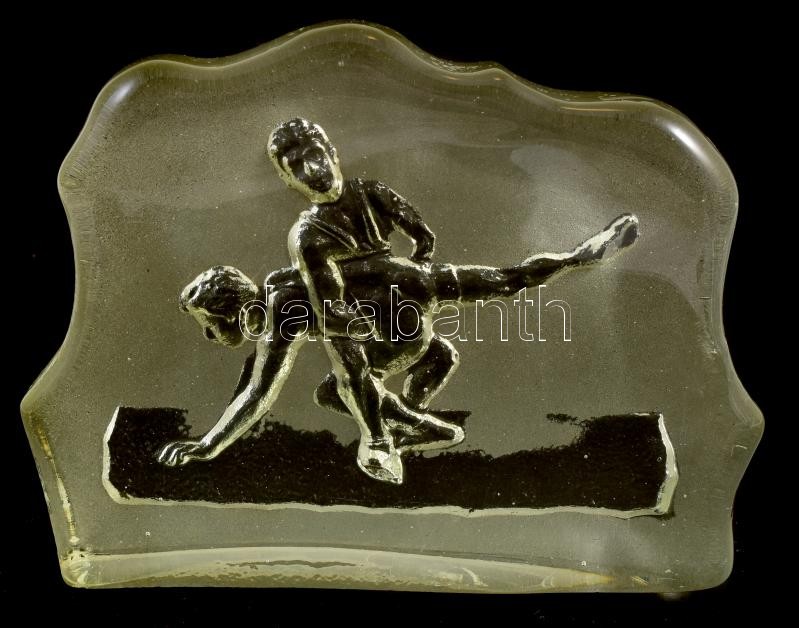 Beschreibung: Birkózók, üveg asztali dísz, kis kopásnyomokkal, 17×13,5 cm
