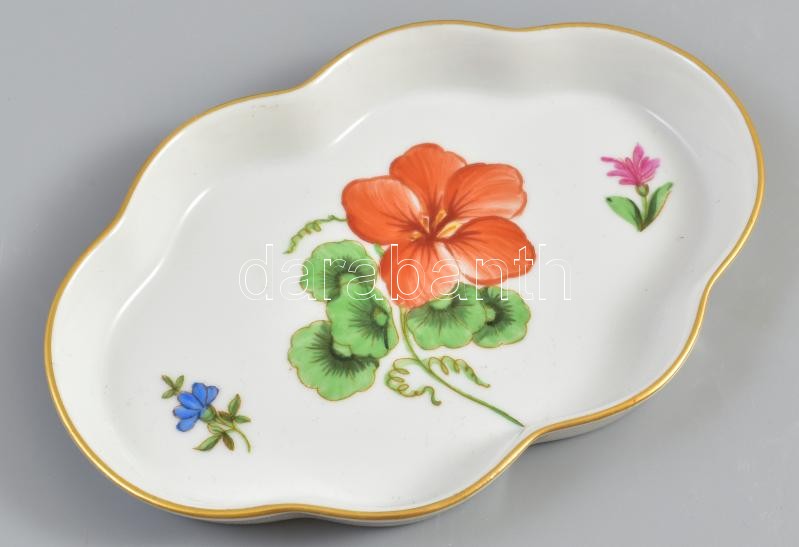 Beschreibung: Herendi virág mintás tálka. Kézzel festett, jelzett, minimális kopással 13,5 x9 cm
