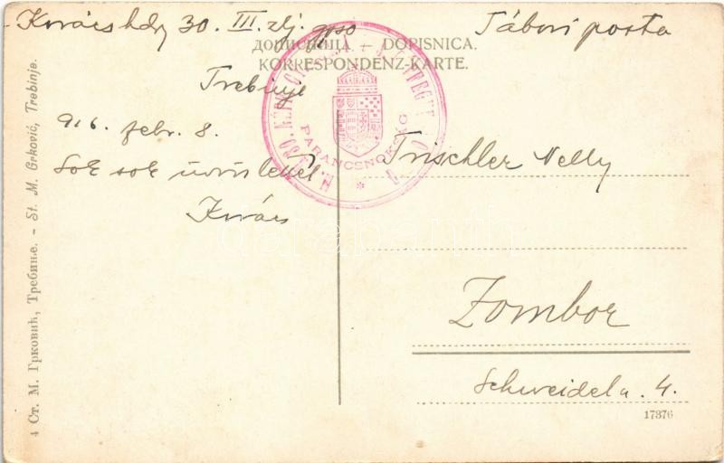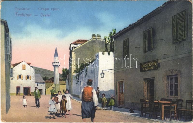 1916 Trebinje, Stari grad, Gostiona / Castel / street view, old castle, mosque, inn of J. Budalic + "M. kir. 30. népf. gy. ezr. I. zlj. gépfegyverosztag parancsnokság" (EK)