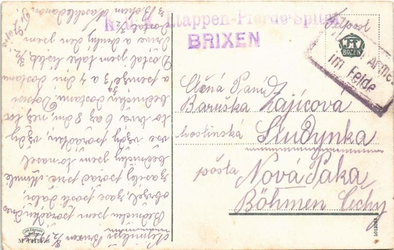 Beschreibung: 1917 Bressanone, Brixen (Südtirol); Neue Artillerie-Kaserne / K.u.K. military artillery barracks + "K.u.K. Etappen-Pferde-Spital BRIXEN" (EK)