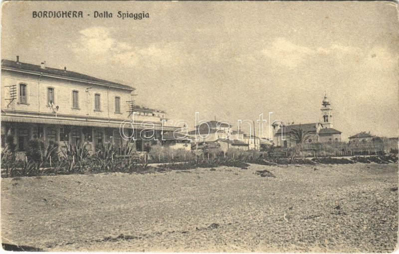 Bordighera, Dalla Spiaggia / beach, church (EK) https://www.darabanth.com/de/396-Fernauktion/396.0/Ansichtskarten/Italien~1500063/Bordighera-Dalla-Spiaggia-beach-church-EK~II2408391