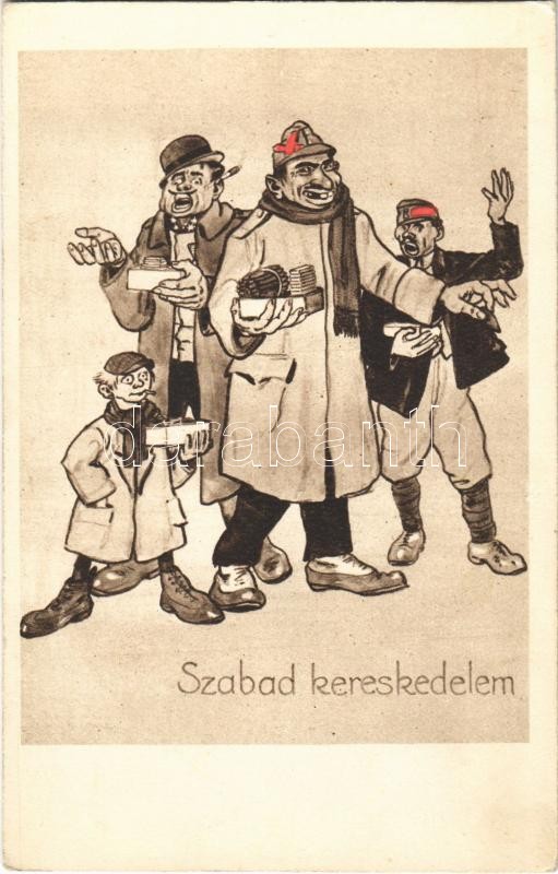 Szabad kereskedelem. Antiszemita kommunizmus ellenes gúnyrajz, Judaika... https://www.darabanth.com/de/396-Fernauktion/396.0/Ansichtskarten/Judaica~1500077/Szabad-kereskedelem-Antiszemita-kommunizmus-ellenes-gunyrajz-Judaika-Hungarian-anti-Semitic-and~II2409890