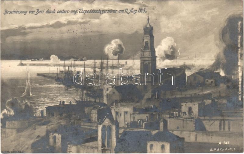 1915 Beschiessung von Bari durch oesterr.-ung. Torpedobootszerstörter / WWI K.u.K. Kriegsmarine, Bombardment of Bari by Austro-Hungarian torpedo boat destroyer + K.u.K. Marinefeldspotamt s: Alex Kircher
