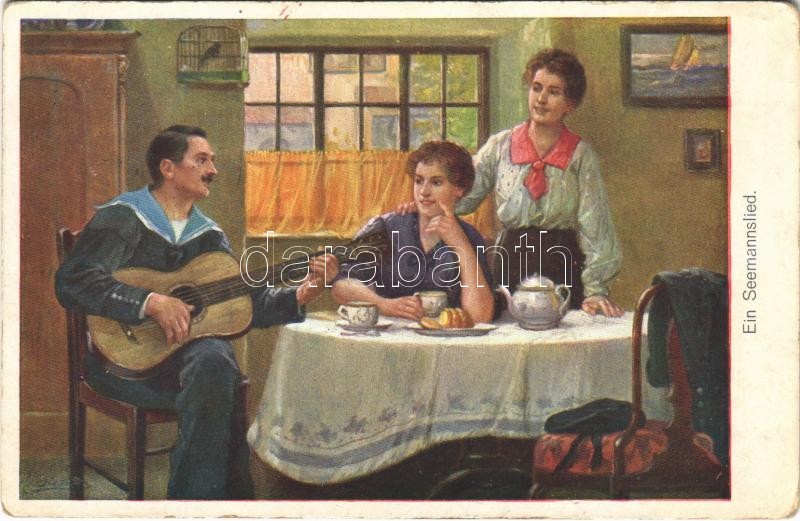 Beschreibung: Ein Seemannslied / WWI Austro-Hungarian Navy, K.u.K. Kriegsmarine, mariner with guitar and ladies. W.R.B. & Co. Nr. 231. (kopott sarkak / worn corners)