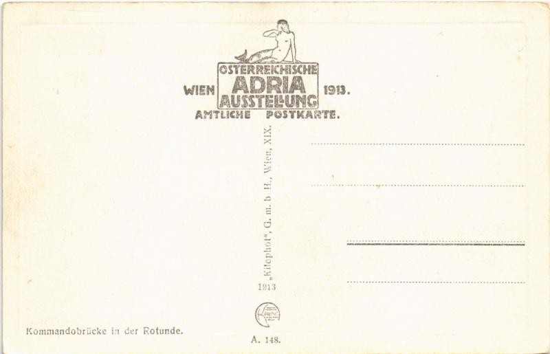 Kommandobrücke in der Rotunde. Oesterreichische Adria Ausstellung Wien 1913. Amtliche Postkarte Kilophot A. 148. / Austro-Hungarian Navy, K.u.K. Kriegsmarine, battleship's command bridge at the Austrian Adria Exhibition in Vienna (EK)