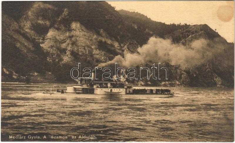 SMS Szamos a Császári és Királyi Haditengerészet monitor típusú hadihajója az Aldunán. Medlárz Gyula felvétele. Dunaflottilla. Hadifénykép Kiállítás / K.u.K. Kriegsmarine Donauflottille / WWI SMS Szamos Austro-Hungarian Navy Danube Fleet river guard ship (fl)