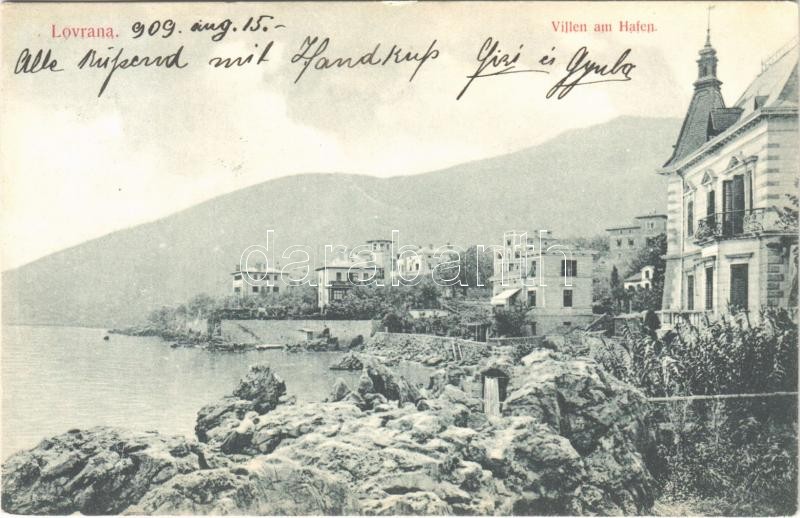 1909 Lovran, Lovrana; Villen am Hafen / villa, seashore https://www.darabanth.com/de/396-Fernauktion/396.0/Ansichtskarten/Kroatien~1500008/1909-Lovran-Lovrana-Villen-am-Hafen-villa-seashore~II2333421