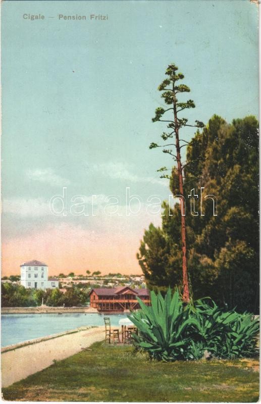 1912 Mali Losinj, Lussinpiccolo; Cigale. Pension Fritzi / beach, hotel... https://www.darabanth.com/de/396-Fernauktion/396.0/Ansichtskarten/Kroatien~1500008/1912-Mali-Losinj-Lussinpiccolo-Cigale-Pension-Fritzi-beach-hotel-EK~II2329750