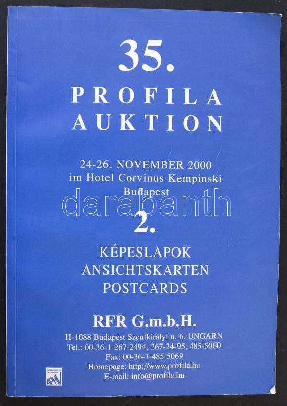 35. Profila Auktion 2. Képeslapok - aukciós katalógus 390 oldallal. 20... https://www.darabanth.com/de/396-Fernauktion/396.0/Ansichtskarten/Literatur-uber-Postkarten~1500001/35-Profila-Auktion-2-Kepeslapok-aukcios-katalogus-390-oldallal-2000~II2403923