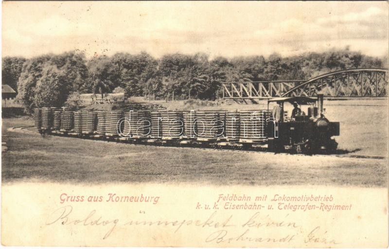 1905 Korneuburg, Cs. és kir. vasúti és távirati ezred tábori vasútja gőzmozdonnyal / K.u.K. Eisenbahn- und Telegraphen Regiment, Feldbahn mit Lokomotivbetrieb / Austro-Hungarian Railway and Telegraphy Regiment, field railway with locomotive