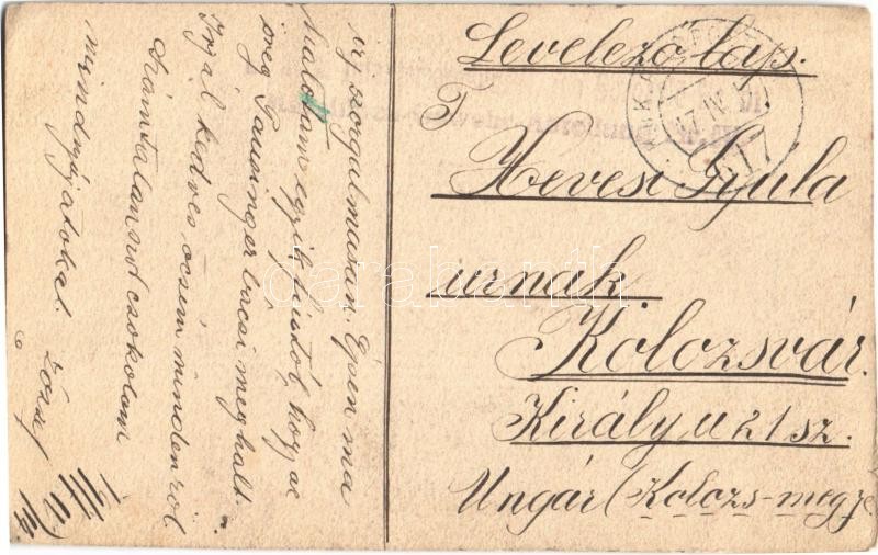 Beschreibung: 1917 Kézzel rajzolt tábori postai levelezőlap / Feldpostkarte / WWI Austro-Hungarian K.u.K. military, hand-drawn field postcard (vágott / cut)