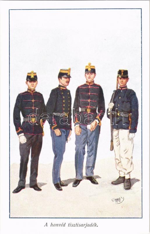 Beschreibung: A honvéd tisztisarjadék. Honvédség története 1868-1918 / Austro-Hungarian K.u.K. military art postcard, officers s: Garay